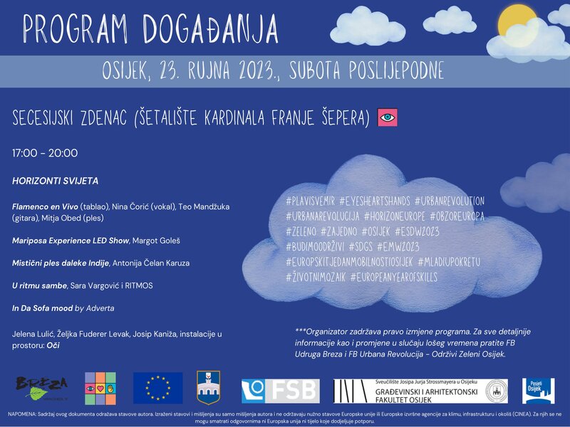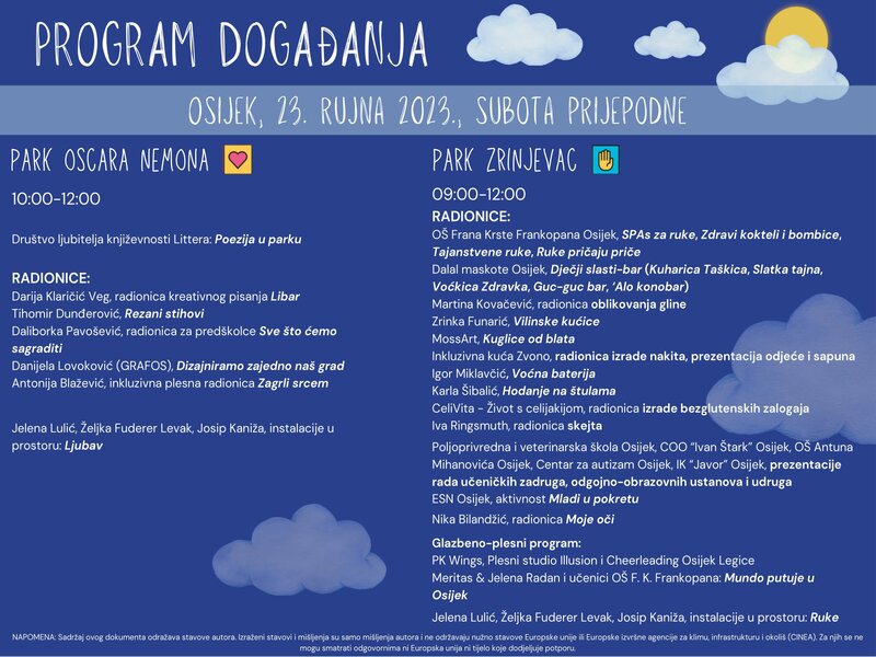 16:30-18:00 Sajam slobodnog vremena za djecu i roditelje uz radionice, degustacije i prezentacije Meritas & Jelena Radan, izvedba s učenicima: Mundo putuje u Osijek